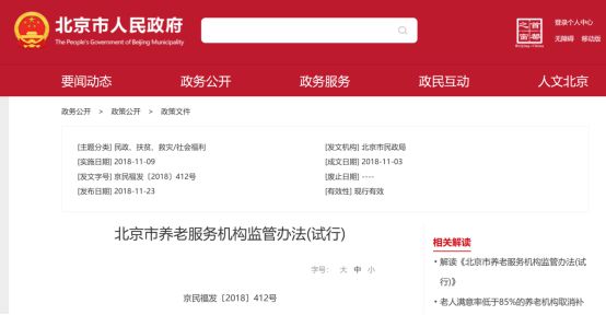 政策名称:《北京市养老服务机构监管办法(试行)》