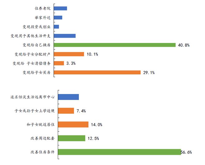 “居住改善”因素从本质上讲属于“养老驱动型”因素,其目的是为了通过改善老年人自身居住条件(既包括居内条件,也包括周边环境及配套),以更好地满足其居住需求,提高养老品质。以居住改善为主要动机的老人,往往更看重房屋居住属性,倾向于做“增量选择”,购买品质更好、环境更好或适老化条件更好住房。