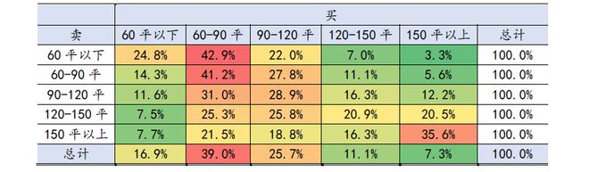 在置换过程中,无论老年人原有房屋大小,多数老龄群体均会指向中间面积段进行置换,原居所面积小于60㎡的老年人,倾向于购置更大的房屋;而原居住在此面积段的老人依然购置近似面积住房;90㎡-150之间业主,则会置换更小面积的房屋;对于150㎡以上老龄业主,60-90㎡房屋也是其主要选择之一。显示出60-90㎡中间户型可能是老年群体居住需求、支付能力与代际支持等多重因素的博弈结果。