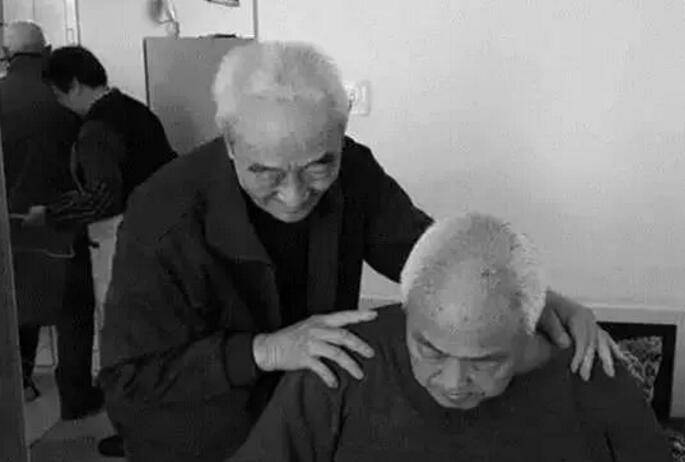 在这个家庭中,被照顾的是刘文娟偏瘫的83岁老父亲刘舒仁,照顾刘舒仁的三位老人分别80岁、70岁和67岁。