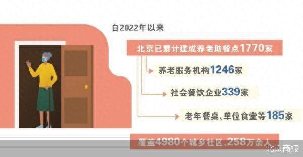 数据显示,自2022年以来,北京已累计建成养老助餐点1770家,其中养老服务机构1246家,社会餐饮企业339家,老年餐桌、单位食堂等185家,覆盖4980个城乡社区、258万余人。