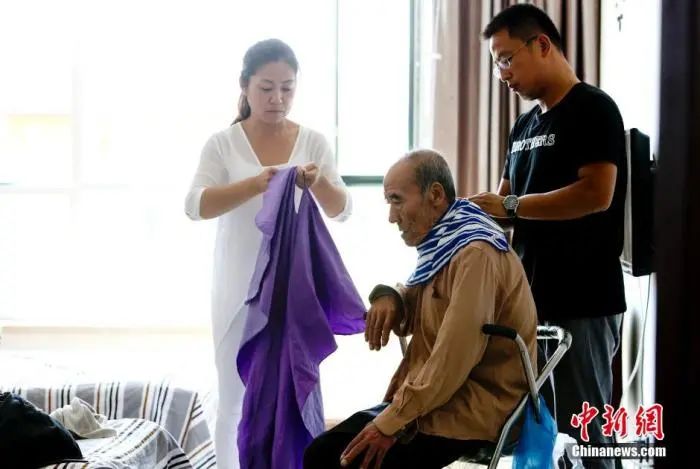 资料图:养老院工作人员照护老人。中新社发 陆欣 摄