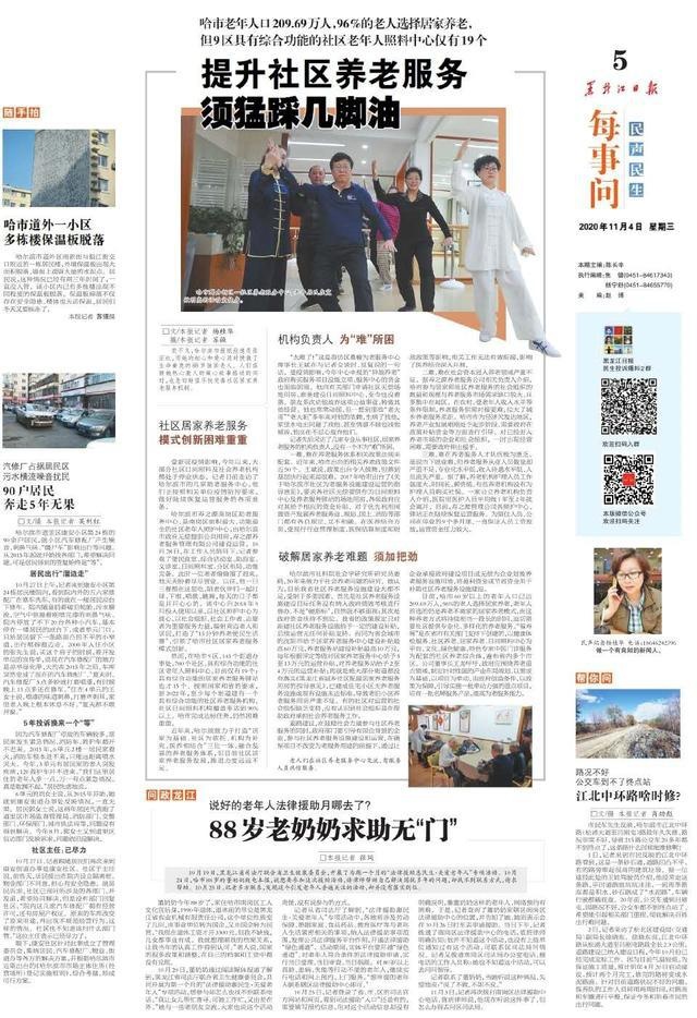 前不久,哈尔滨市报纸投递员张正红,用她的细心和爱心及时挽救了生命垂危的88岁独居老人。人们在被她热心救人的暖心故事感动的同时,也急切盼望尽快完善社区居家养老服务机制。