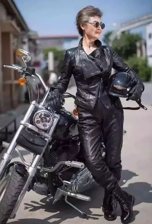 衰老和无力在她身上毫无踪迹,皮衣皮靴皮手套,加上炫酷哈雷摩托车,73岁照样玩转速度与激情。