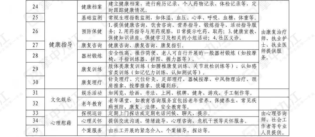 上门服务包括上门送餐,上门助浴,衣物洗涤、清洁卫生,紧急救援,陪同就医、代开药和取药,扶助出行,“这些服务主要由社区居家养老服务中心或指定的相应服务机构提供。”