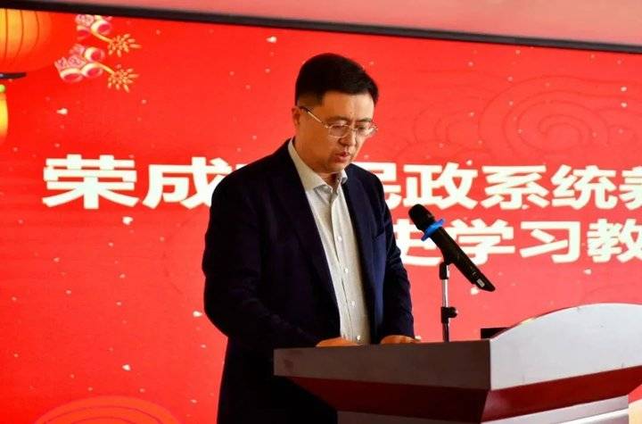 培训会开始前,举行了荣成市民政系统养老机构党史学习教育,民政局党组书记、局长王彤进行授课,要求全市养老行业坚持守正创新,把党史学习教育融入为老服务中,广大养老从业人员要坚持在学习党史中践行养老人的初心使命,不断提高自身业务水平和服务技能,负起时代赋予的养老行业发展重任,全力以赴为老人提供高品质服务,积极打造“安全、品质、温暖”的荣成养老服务体验。