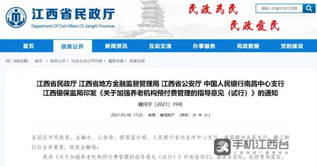近日,省民政厅联合多部门出台《关于加强养老机构预付费管理的指导意见(试行)》(以下简称《指导意见》)。