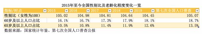 老龄化程度的逐步加深与性别结构持续改善有密切联系。根据七普数据,我国总人口性别比(以女性为100,男性对女性的比例)为105.07,与2010年105.20基本持平,略有降低。出生人口性别比为111.3,较2010年下降6.8。