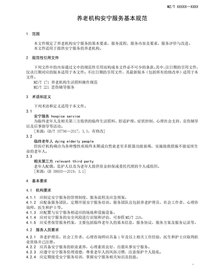 因篇幅有限,本文重点分享《养老护理员职业技能竞赛基本术语(征求意见稿)》与《养老机构安宁服务规范(征求意见稿)》。