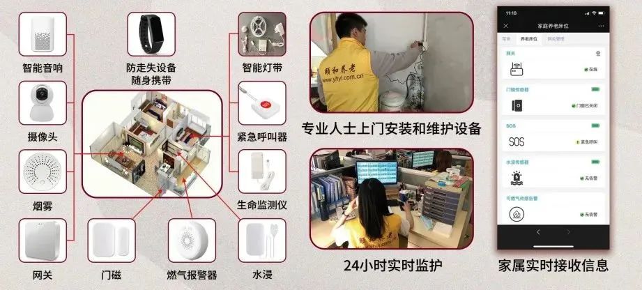 机构通过安装智能设备24小时监测老人在家生活的安全状态,老人在家里可呼叫求助或预约上门服务。