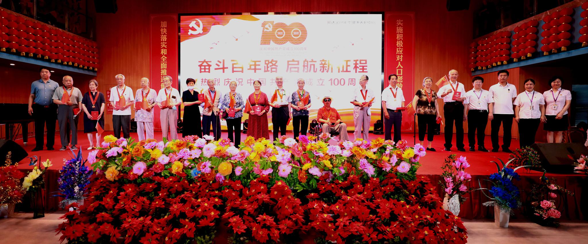六成老人是来自北京的党员,党龄超过50年的多达1600多人,位于河北燕郊的燕达金色年华健康养护中心成为入住老年党员最多的养老院。今天,燕达养护中心为部分老党员颁发“光荣在党50年”纪念章,并在养老院内开展系列主题活动,与老人们共庆建党百年。