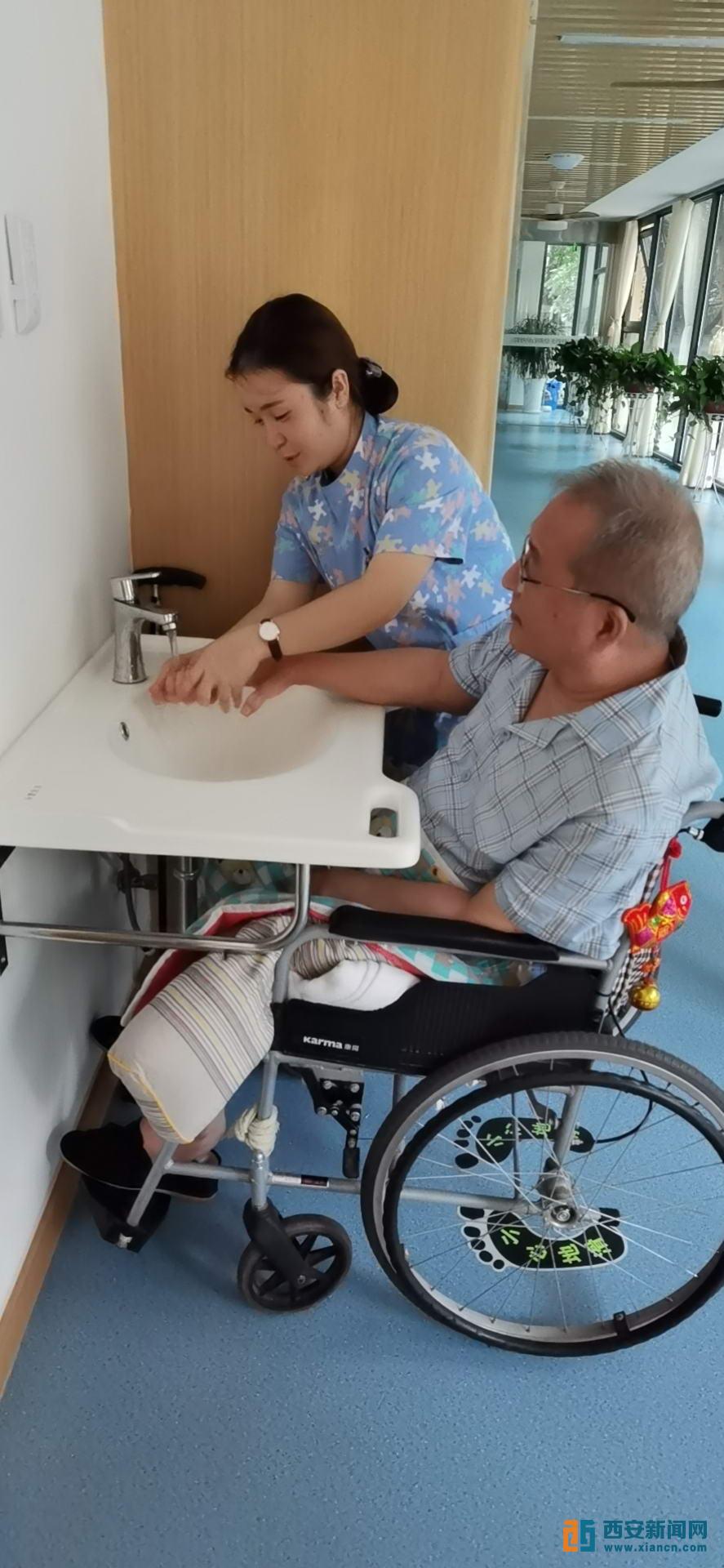 记者在西京社区天使爱心护理院看到,院内干净整洁,墙面大部分采用落地窗,整体宽敞明净,老人们的日用物品储物柜都标有姓名。“我们天使爱心护理院属于社区嵌入式医养结合的养老机构。主要为社区里的失能失智老人提供生活照护、慢性病管理、康复治疗、心理抚慰、营养膳食等服务。同时针对社区里的健康老人,也提供日间照料、居家服务、助餐助医等上门服务。”西京社区护理院工作人员介绍,目前护理院内设置床位66张,为了提供有针对性的服务,院内分为半失能护理区、失智护理区、重症护理区、楼顶花园活动区四个功能区域。