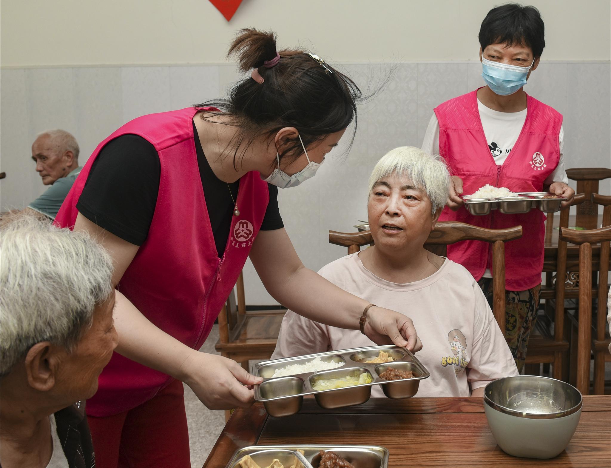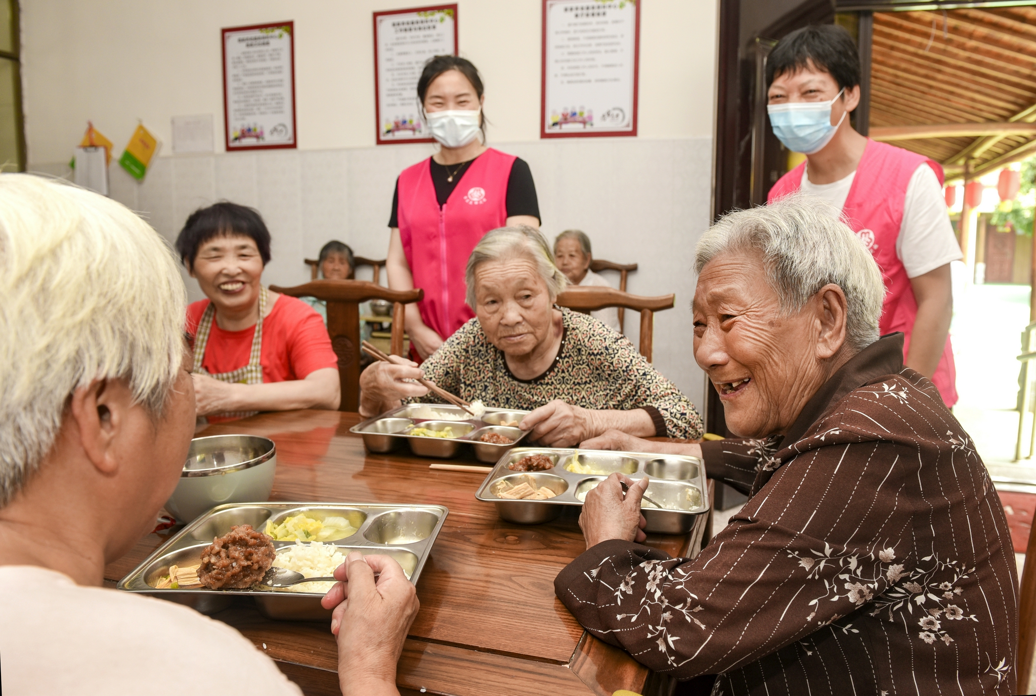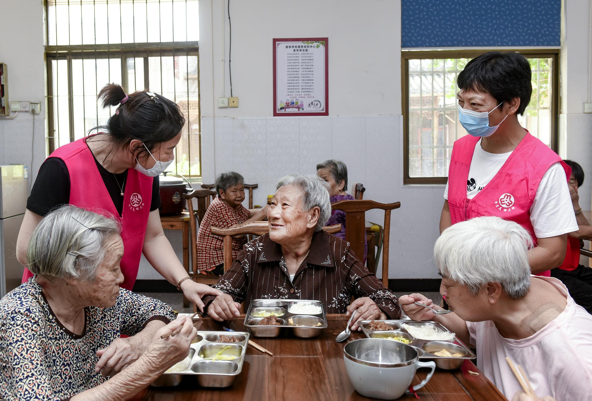 8月23日,金华市金义新区澧浦镇下宅村,46名60岁以上的老人在居家养老服务中心吃上了香喷喷的饭菜。