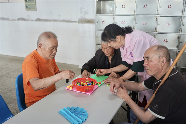 常说吃饱穿暖,无忧无虑是老年人的理想养老生活。因此敬老院秉持着让院内的老人们住得舒适,吃得安心,玩得开心的健康生活方式。通过适老化改造,敬老院的室内和室外环境得到了明显改善;在饮食上,保证每天都荤素搭配;在精神生活上,有护理员陪他们聊天,增加了游戏和健身操等娱乐节目;在健康保障上,医务人员为每位老人建立了健康档案,护士每日为他们量体温、测血压、测血糖。“来这里这么久,早就把敬老院当成家了。”沈锁勤爷爷常在敬老院的健身设施上活动,时不时还会和“院友”下下棋,打打牌,“子女没空管我,现在一大伙人一起养鱼看花挺好的。”