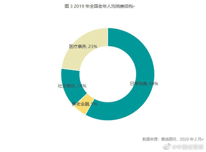 根据《中国经营报》与赛迪顾问联合发布的《2020中国健康养老产业创新与投资趋势》报告,2019年老年人的年人均消费14945.6元,分布在日常消费、医疗康养、社交娱乐、养老金融等方面,其中医疗康养、社交娱乐领域近三年增长率最高。
