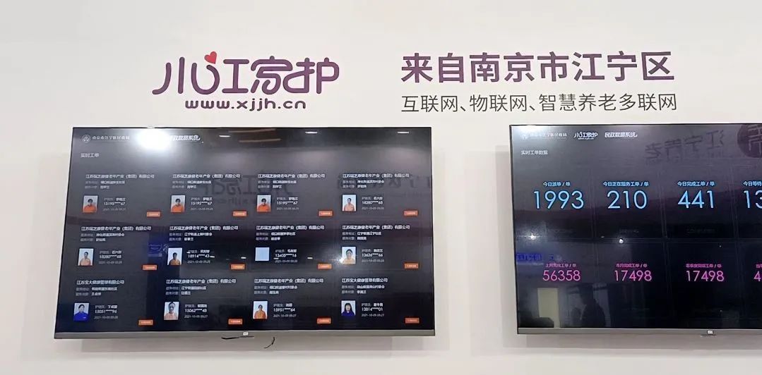 老人只要用手点击“一键通”呼叫器,智慧平台就能就近通知服务组织和护理院及时上门救助;联网式燃气(烟雾)、防跌倒等报警系统在老人发生意外的第一时间线上报警并响应,有效防止意外发生……在南京江宁区展位,一项项挂墙展示的由“互联网+养老院”智慧养老工程带来的惠民举措,让老人在家门口安全又幸福地养老成为可能。