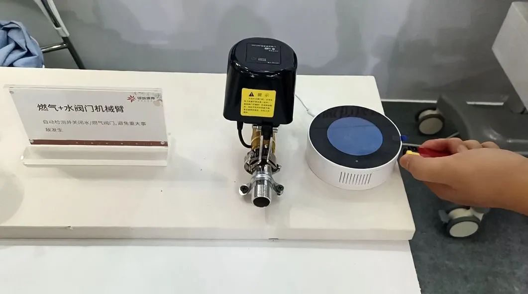 电器浸了水,智慧的机械臂便能自动关停水阀。眼前这个个头小小的产品吸足了参观者的注意力。“可别小瞧这个和燃气、水阀门相连的机械臂,它与阀门感应器做了联动,你看,我把插头浸在水里,机械臂就自动把阀门关了。”银城康养信息部经理宋天晖边操作边向记者介绍道。他补充说,在实际上门服务中他们还发现了一大痛点——如果老人晕倒,“破门而入”进行抢救非常困难。对此,他们还将机械臂的功能延展至智能门锁上,并与家中安装的雷达波监测系统进行互联。“根据老人胸腔高度变化的原理,一旦雷达波检测到数据有变化,便会自动通过网端将电子门锁紧急动态密码发送至移动APP上,方便抢救人员第一时间解锁进门。”