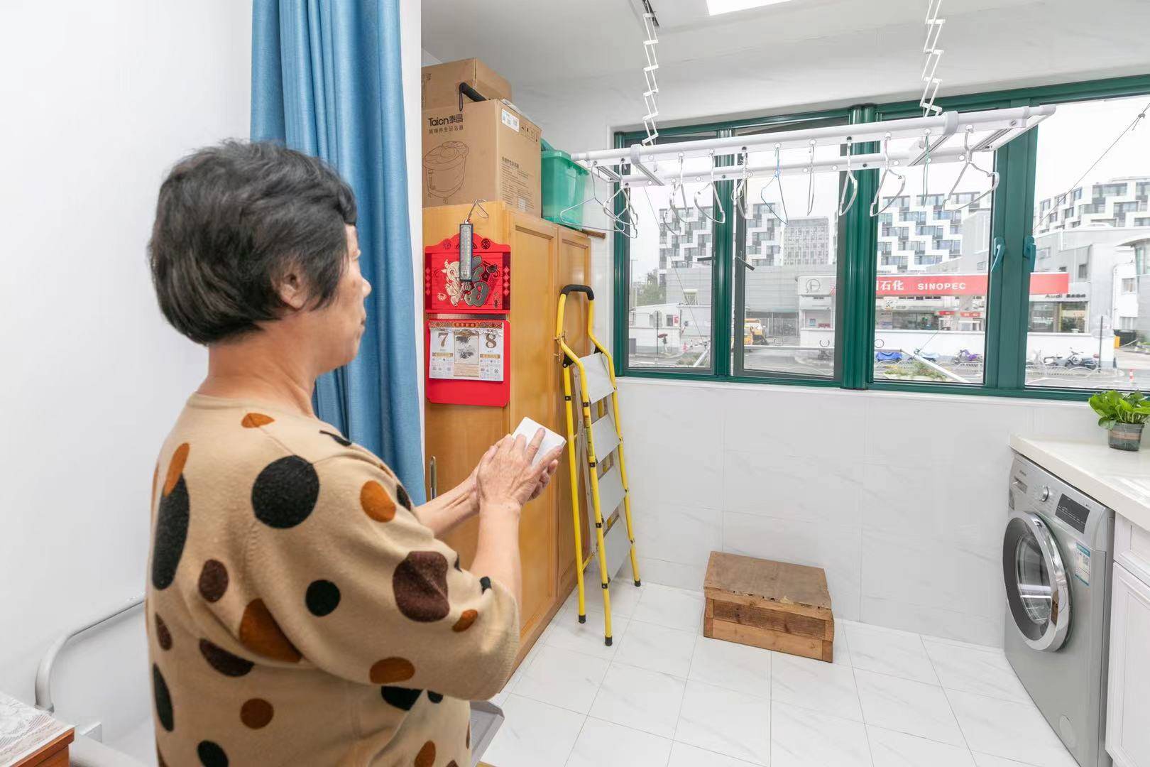 “增加了一些智能设备,包括可移动的护理床、智能晾衣架、窗帘和灯。”彭浦新村街道87岁的郁顺清老人,适老化改造选择了全屋改造。
