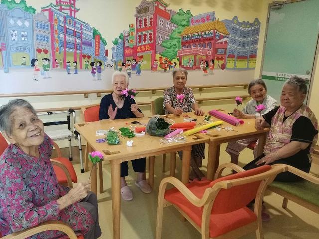 广州市越秀区六榕街综合养老服务中心(颐康中心)为享受全托服务的社区长者举办手工花制作活动。通讯员供图