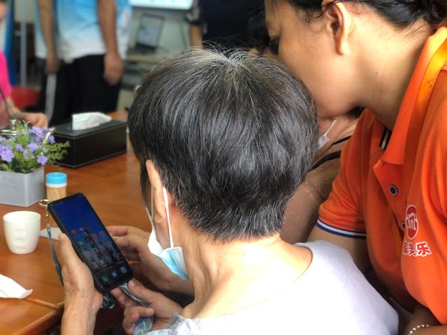 志愿者引导老年人下载市民一站式公共服务APP。中房报记者 陈标志/摄