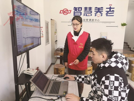 图为滦南县养老服务信息中心工作人员正通过手机,察看志愿者宿贺花服务情况。 记者 李雪松 摄