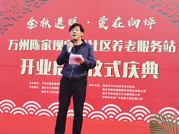 11月2日,万州区向坪社区养老服务站举办开业庆典仪式。市民政局原副局长沈文彪、市老龄办原专职副主任陈兴源、万州区民政局科长向东等领导出席仪式。万州区卫健委、老年大学、老州区陈家坝街道相关负责人以及重庆百纳龙图健康养老服务有限公司董事长熊军、总经理陈刚携社会爱心企业团队参加活动。