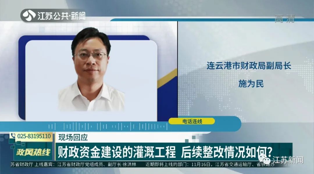 江苏省财政厅副厅长 徐洪林:对于连云区的这个项目,无论是区里面还是市里面,可以和相关的职能部门,从项目规划上面再看,特别是对以前已经兴办的项目,在后续的专项资金安排上面能不能继续跟进,比如水源有问题的,从水源改进来处理,这样通过后续的继续投入,来保证项目设施能够有序的发挥作用。第二个要和项目的管理部门协同配合,要有健全的责任支撑体系,要靠相关的职能部门或者行业主管部门牵头,来构建针对项目管理的更加科学的、有序的跟踪机制,从这两个方面入手,可以持续解决连云区村民的诉求。
