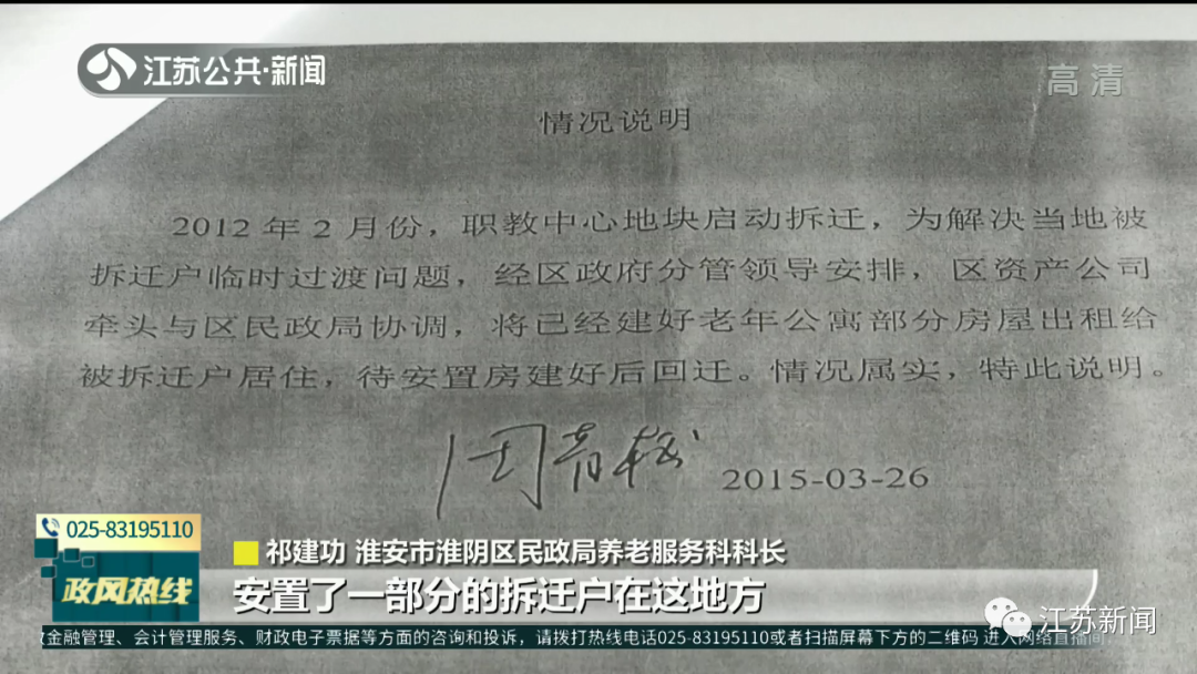 淮阴区民政局介绍:为了防止“盈利就包,亏本就跑”的事情发生,因此当初民政局采用内部招标的方式,以每年51万元将养老公寓的承包权交给了民政局内部人员,再由承包人对外招租。