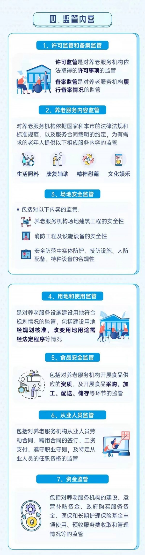 为加强本市养老服务机构的综合监管工作,《上海市养老服务机构综合监管办法》今天公布,明确对养老服务机构的许可监管、备案监管、养老服务内容监管等。详见图解↓