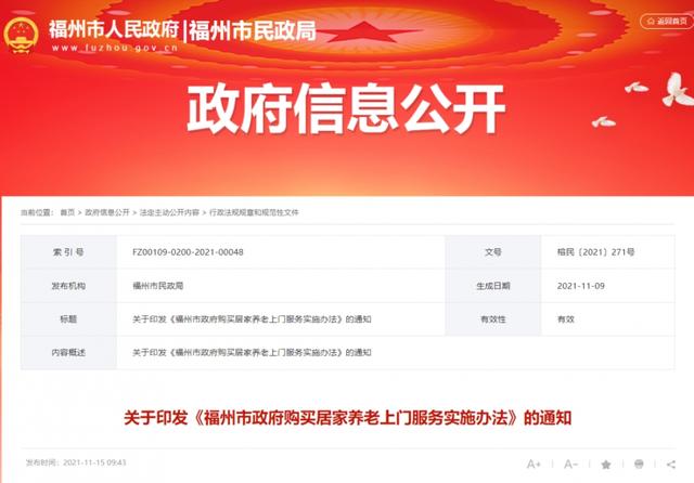 重磅!福州印发通知,市政府来购买居家养老上门服务助医、助行、助餐、巡访关爱、紧急救援……各种服务应有尽有。