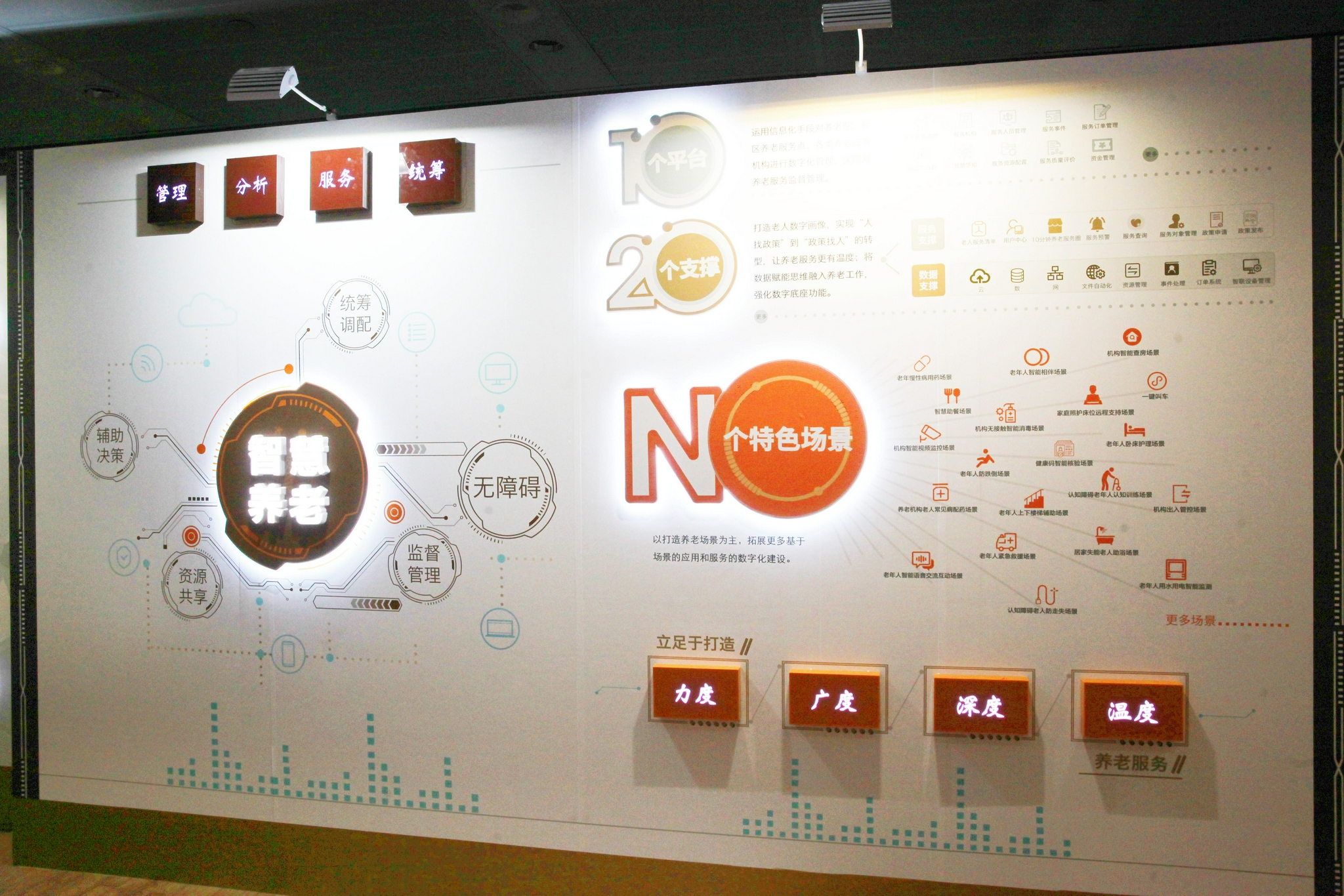 “N个特色场景”,即以打造养老场景为主,拓展更多基于场景的应用和服务的数字化建设。