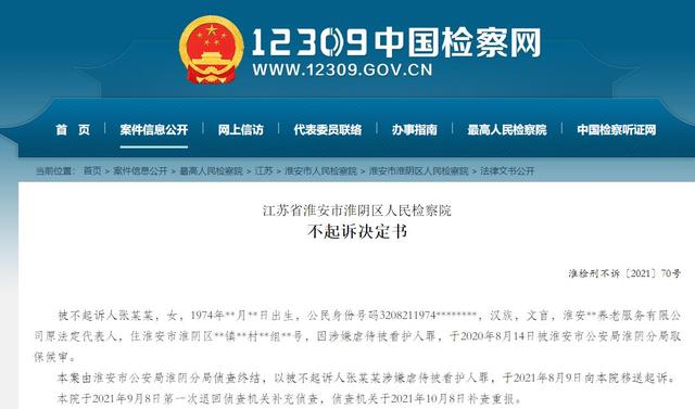 淮安市淮阴区人民检察院对此做出“不起诉”决定。