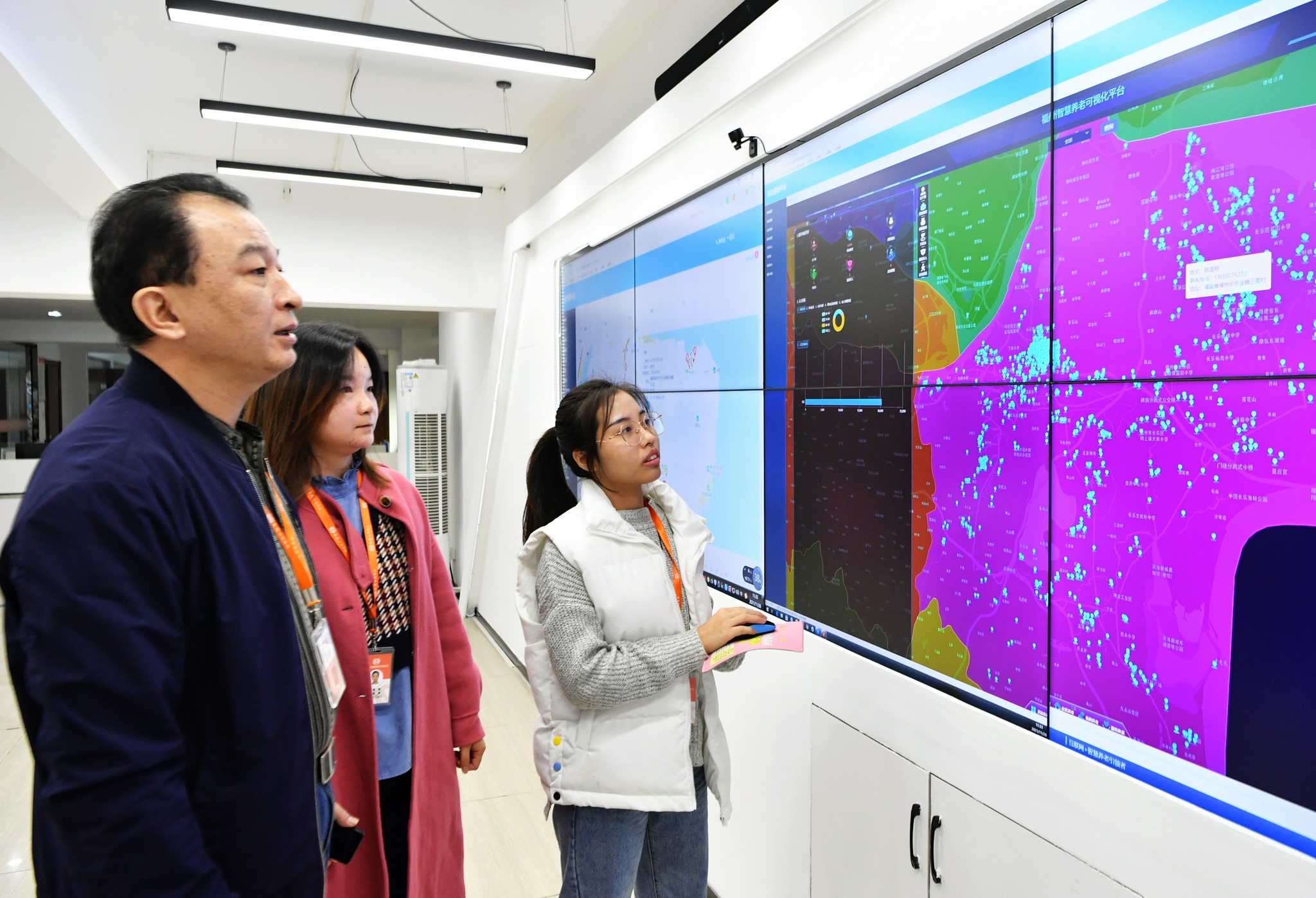 11月26日,福州市长乐区一家养老企业工作人员在系统后台查看各社区在册老人基本信息和健康档案。新华社记者 魏培全 摄