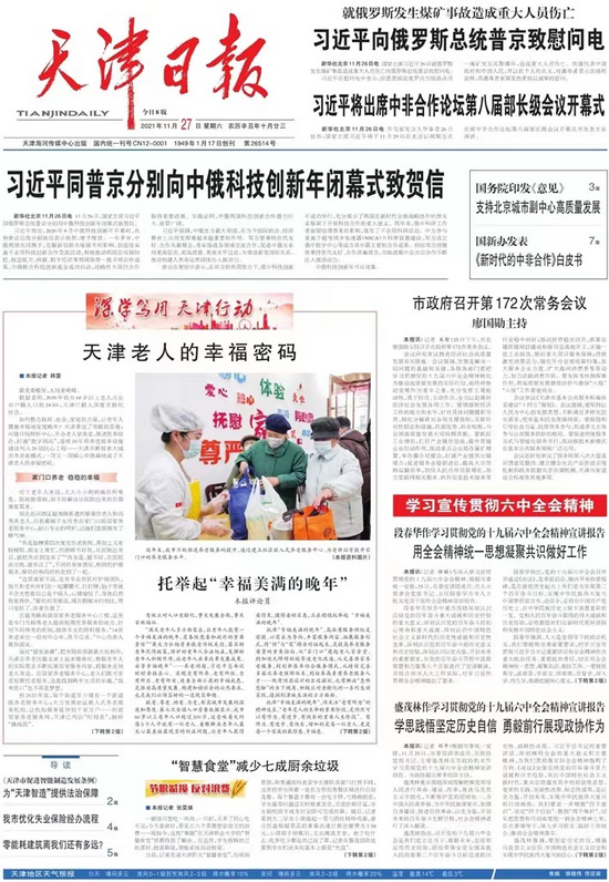 如何整合政府、社会、家庭的力量,让老年人健康幸福地安度晚年?天津拿出了亮眼的答卷:兴建日间照料中心,开办老人家食堂,推进医养结合,打通“数字鸿沟”,连续10年将养老服务设施建设列入20项民心工程……天津不断探索大城市养老新模式,一项又一项暖心举措凝结成了天津老人的幸福密码。