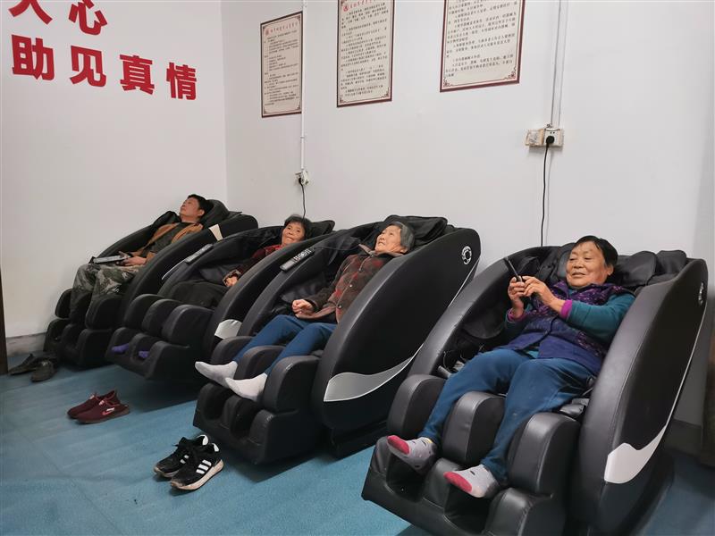 流动助疗则是由乡村医生和第三方有资质的医疗机构上门来给大家检查身体,以及提供理疗服务。“叔叔您锻炼得好哟,数据健康得很。”11月26日下午,在玉皇村养老互助点,理疗师周小琴的话引来围坐在一起的老年人们一阵笑声。当天,她和所在的服务机构来到这里为老年村民们测心率、量血压。旁边屋里,还有几位大爷大妈舒舒服服地坐成一排使用智能足底按摩仪。