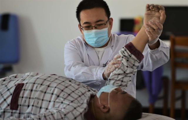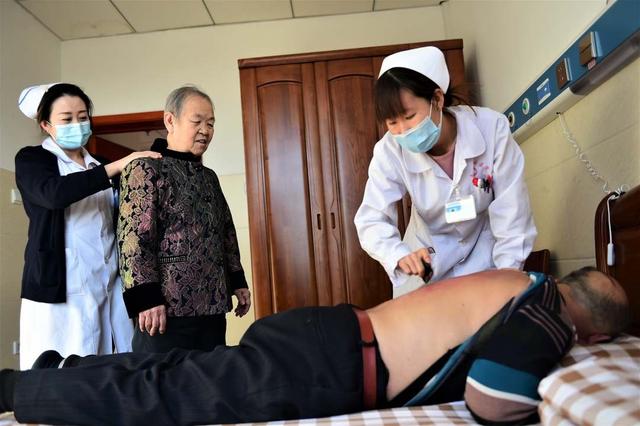 医护人员为南皮县老年养护院进行刮痧、艾灸等中医治疗。
