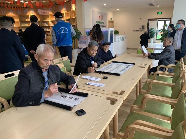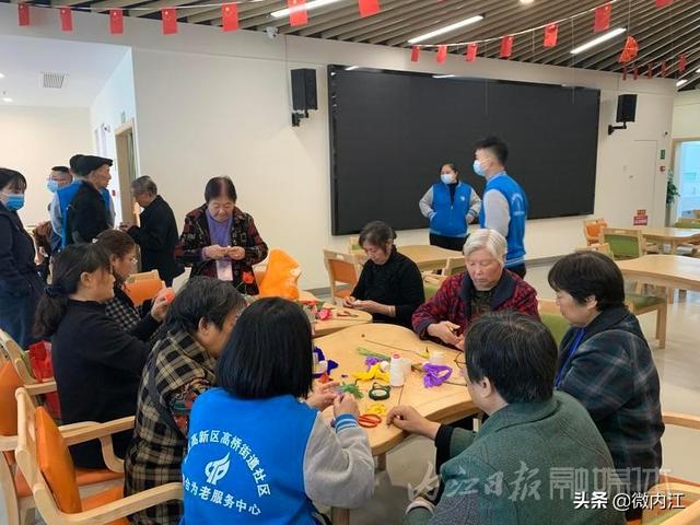 12月1日,在内江高新区高桥街道社区综合为老服务中心大厅,老人们有的练毛笔字,有的做手工,个个脸上洋溢着幸福的笑容。