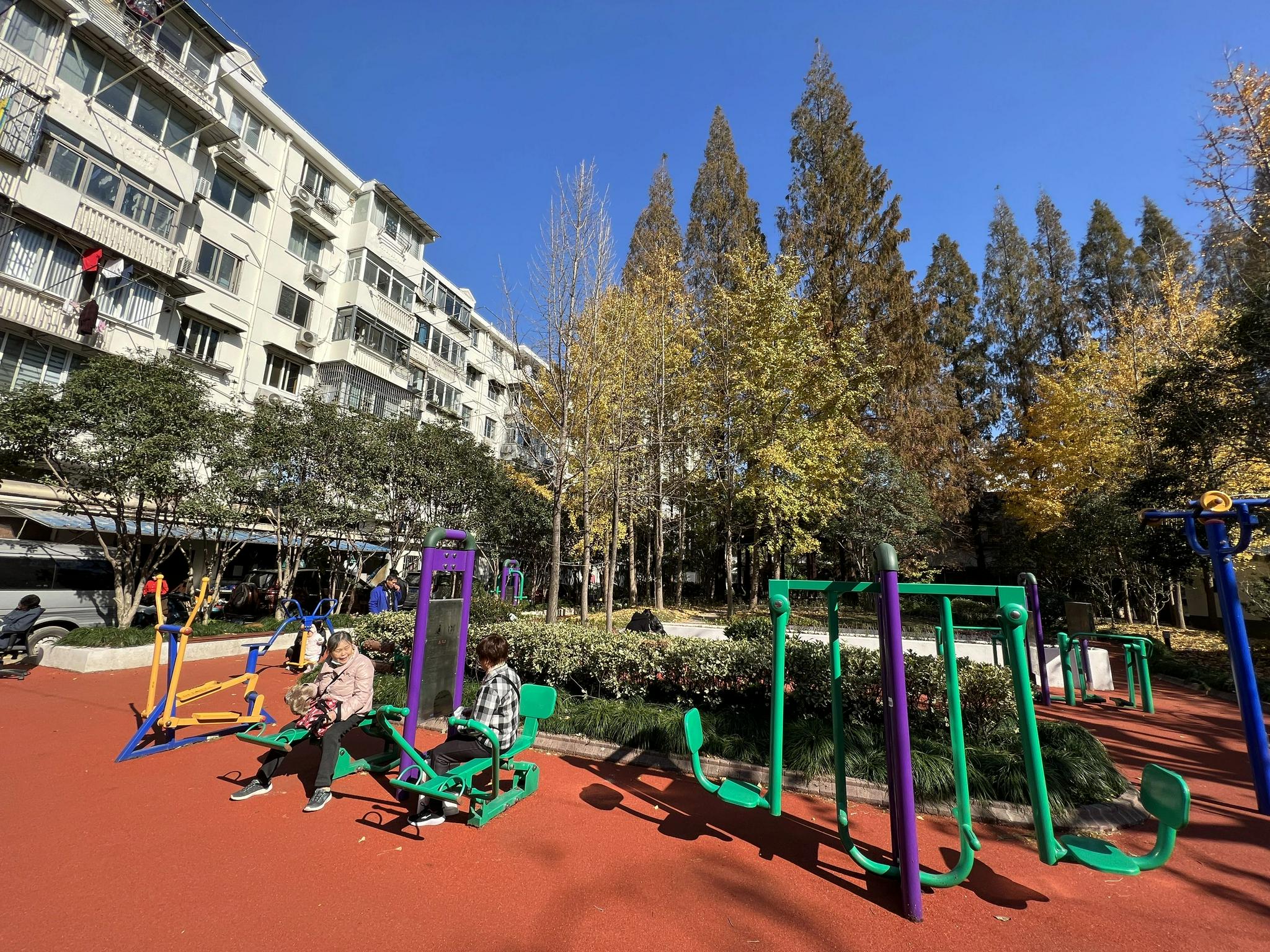华师大一村小区占地近11万平方米,54栋居民楼入住近1700户居民,小区60岁老人占比超30%,绿化率超过30%,小区改造处处与老年人的生活习惯相近,“养老为老”成为了此次更新修缮的核心理念。居民们对小区内的水杉树情有独钟,却又对参天大树带来的遮光和树叶掉落问题颇有微词。于是,请专业人员修剪树枝成了更新修缮的一项重要内容。走进每一幢楼,外立面和公共楼道都被粉饰一新,门牌铭牌更加清晰,原先破烂不堪的外挂式信报箱也换成了入墙式的,考虑到老年人腿脚不便,三楼转角处都安装了“歇歇椅”,楼梯扶手也换成了木质。