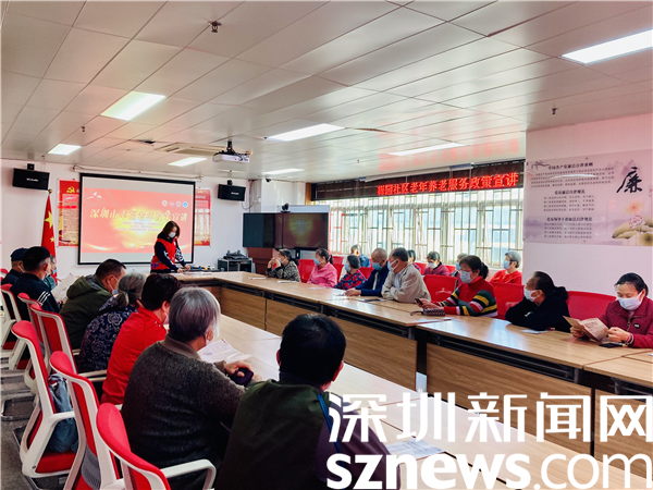 会上,社工就《深圳幸福养老服务指南》中的相关内容以及《深圳市人民政府办公厅关于扩大我市老年人享受敬老优惠待遇范围的通知》(深府办函〔2019〕183号)、《深圳市独生子女父母计划生育奖励办法》等政策汇编进行了详细的介绍,重点介绍了老年人免费乘车及景点优惠福利、智慧养老颐年卡办理流程、老年人意外伤害及意外医疗保险办理流程、深圳市长者饭堂和助餐点等,并现场解答了老年人的相关疑问,让老年人对深圳市养老服务政策有了更加全面的了解。