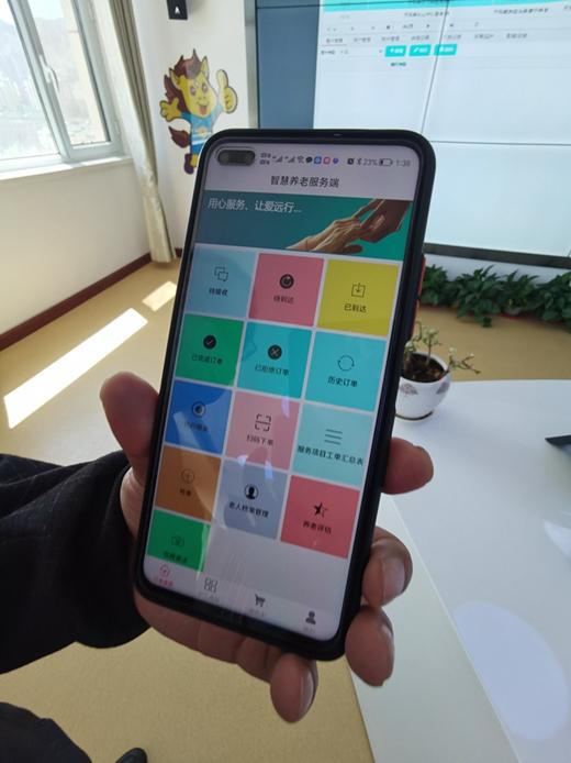 “智慧养老信息中心调用互联网、云计算、大数据等现代信息技术和智能终端产品,为老年人提供紧急呼叫、日常照护、主动关怀等服务。老人用手机打电话或者家属通过APP下单,系统匹配就近的养老护理员,养老护理员扫码进行上门服务。”甘肃万城养老服务集团有限公司武威分公司总经理文国忠介绍说。