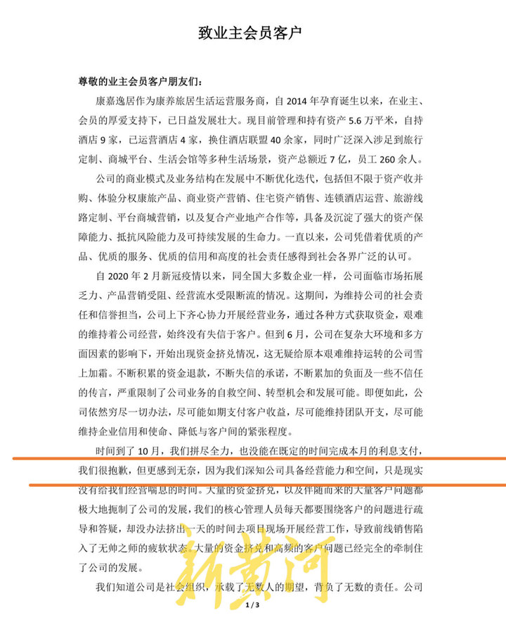 资金链断裂导致无法按协议约定返还会员们的利息,由于疫情原因,换住旅居似乎也受到影响,康嘉逸居会员们的退款请求纷至沓来。“从2020年开始在会员们提出退款要求后,康嘉逸居企业有限管理公司陆续提出了好几套方案。起初是请求延期退款,退款的具体日期也都明确了,但之后并没有按照方案来实施”。康嘉逸居会员吴先生告诉记者。