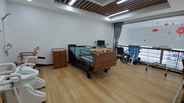 惠南镇在文源综合为老服务中心设置了辅具租赁展示区,展示包括辅助护理床、康复锻炼设备、助浴设施等多种类型的辅具,供有需要的市民前来体验挑选。