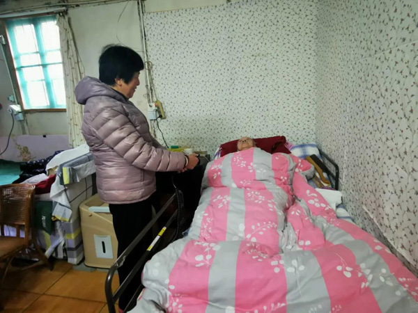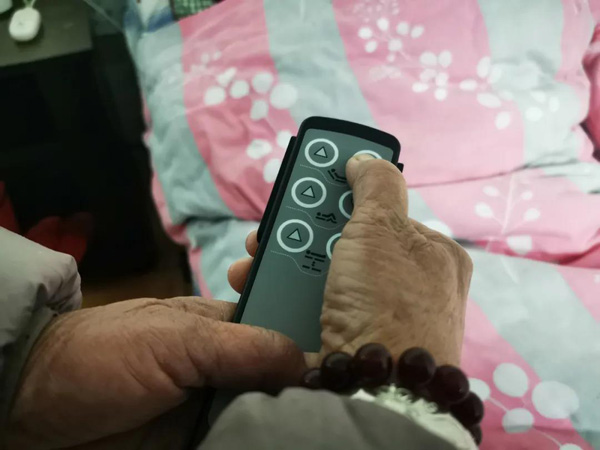 马佩文的母亲杨韵翘已经99岁,因为行动不便,平时大多数时间呆在床上。自己年龄也不小了的马佩文,在照顾老人起身的时候,经常会感到吃力,于是今年特意租了一张电动护理床。“这样操作起来方便很多,按着遥控器,就可以把床头或床尾升起来,整张床也可以一起升降。”