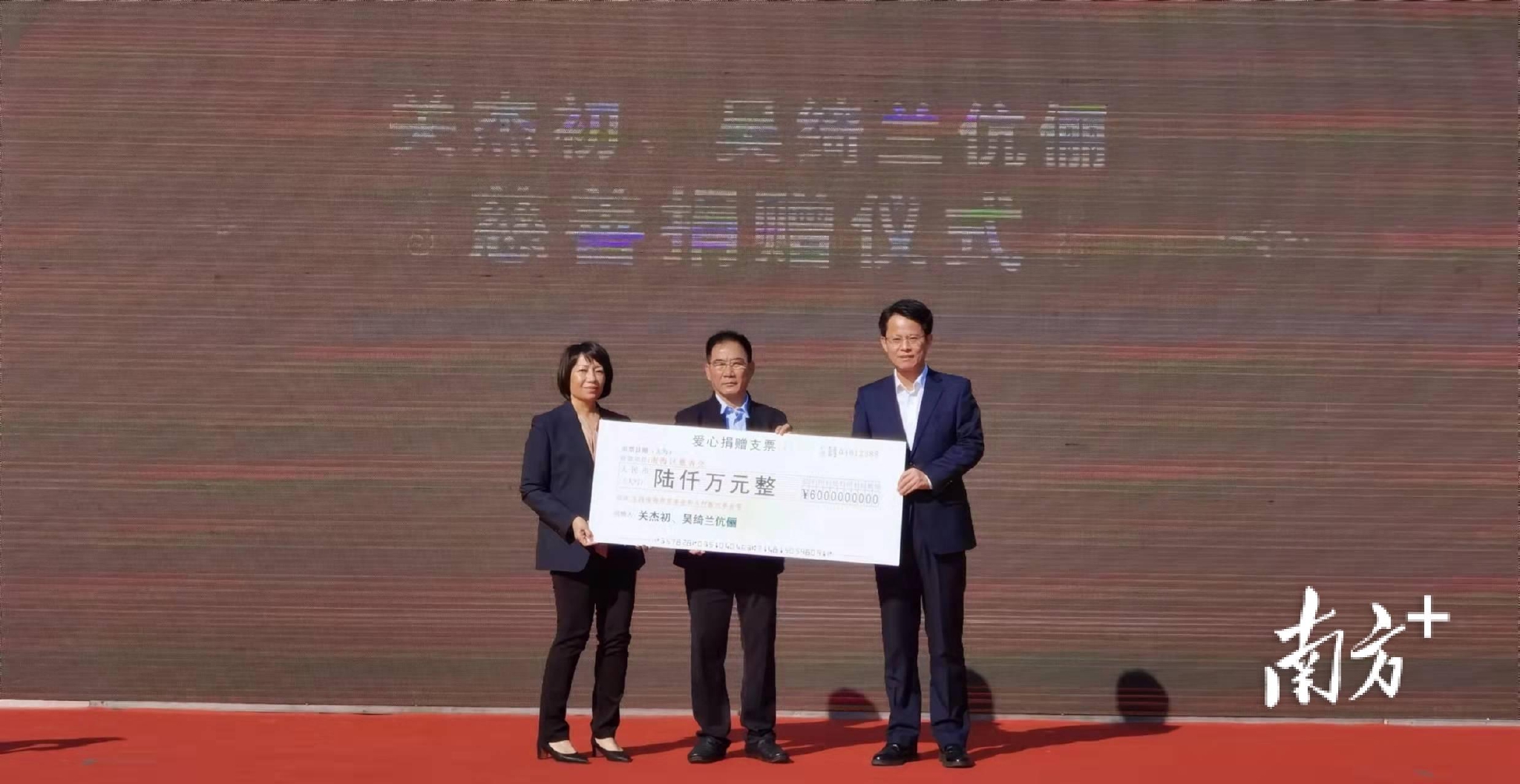 关杰初、吴绮兰夫妇向南海区捐赠6000万元慈善金。尹辅华 摄