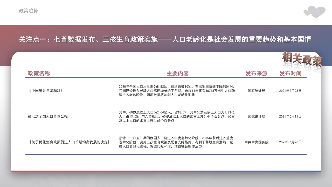 2020年全国人口出生率为8.52‰,首次跌破10‰,在出生率快速下降的同时,我国已经进入老龄人口高速增长的平台期,未来14年将有36776万出生人口陆续进入老龄阶段,两项数据将加剧人口老龄化形势。