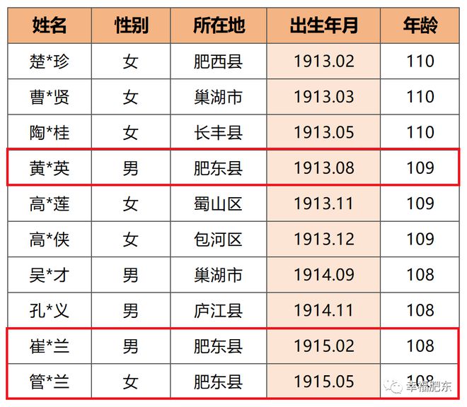 在合肥各县(市)区里,肥东县百岁老人数量最多,共有152人。其中,其中男性44位,女性108位。