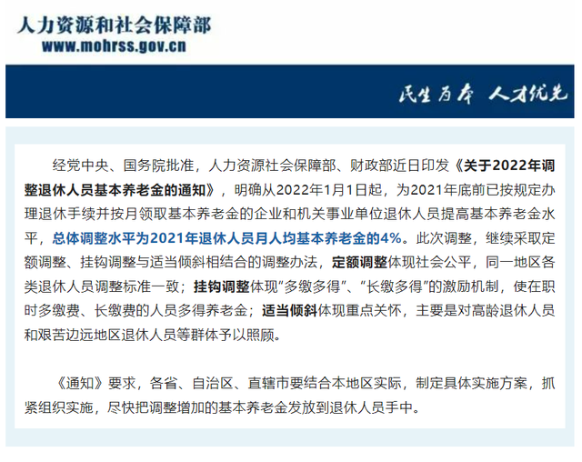 2021年退休人员月人均养老金的4%,要求各省以全国调整比例为高限,确定本省调整比例和水平。