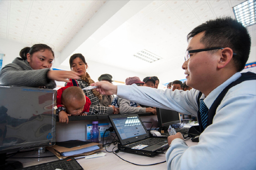 每到养老金发放高峰日,在上海银行网点中,总能看到一群身穿蓝马甲、胸挂蓝吊牌的老年导银