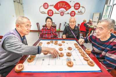 一定规模的储蓄能够为老年人安享幸福晚年生活提供重要经济保障。图为9月3日,几位老人在山西省运城市盐湖区社会福利服务中心下棋。 薛 俊摄(人民视觉)