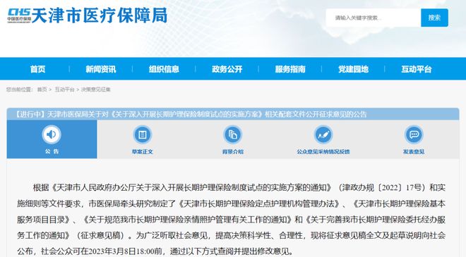 为稳步推进我市长期护理保险制度(以下简称“长护险”)试点工作,确保长护险基金使用高效和规范,近日,天津市医保局制定了《天津市长期护理保险基本服务项目目录(试行)》(以下简称《长护项目目录》),对长护险基本服务范围、居家护理定点护理机构专护包、居家护理亲情照护包、居家护理亲情照护包等项目的内容、服务标准以及时长等信息进行了明确。该文件正在公示期,市民可于3月8日18:00前反馈相关意见建议。
